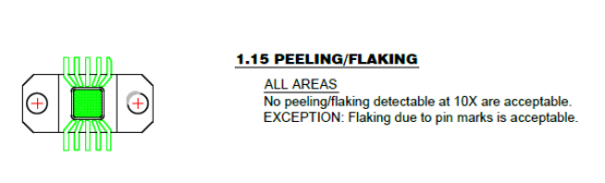 3.4.2引線拉力:引線在拉90°到環框表面時要承擔世界上最大0.66磅擺脫基準線面。